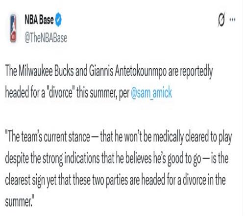 北京時間3月26日,據(jù)TA名記阿米克報道,雄鹿與字母哥今夏大概率將走向“分手”。以下是他的報道——