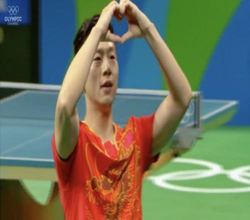 ■圖 / 2016 里約奧運(yùn)乒乓球男單決賽,馬龍奪得冠軍后,雙手比「心」繞場(chǎng)半周(圖片來(lái)源于網(wǎng)絡(luò))
