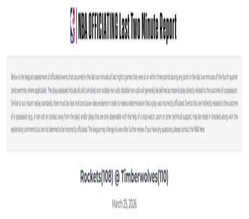 NBA官方也發(fā)布了本場(chǎng)比賽常規(guī)時(shí)間與加時(shí)階段最后2分鐘的裁判報(bào)告,報(bào)告顯示在共4分鐘時(shí)間里,一共出現(xiàn)6次錯(cuò)漏判,兩隊(duì)分別獲利3次,火箭隊(duì)依舊輸?shù)貌辉?/p>