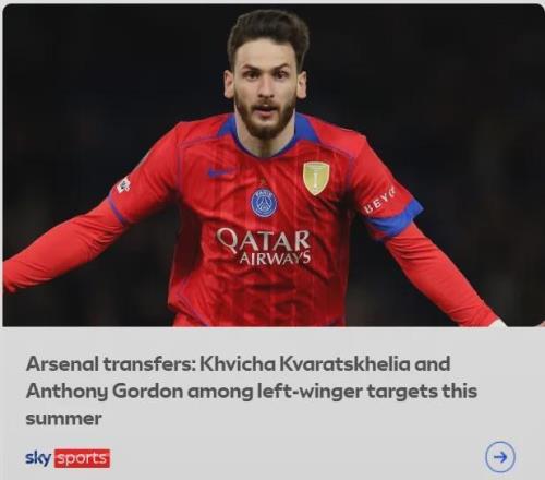 獨(dú)立報(bào)的MD率先報(bào)道了阿森納對(duì)克瓦拉茨赫利亞的興趣,現(xiàn)在天空體育也有跟進(jìn),不過天體說了,交易非常困難,球員不想轉(zhuǎn)會(huì),巴黎更不想賣……