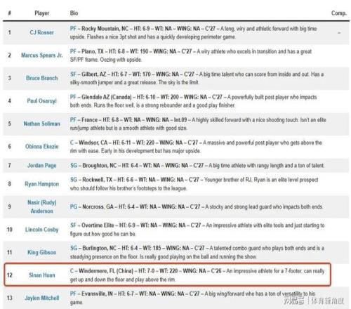 去年,知名美國選秀媒體NBA Draft Room發(fā)布了2028年NBA選秀預測榜單,郇斯楠赫然在列,被預測為2028年首輪第12順位秀。要知道,NBA Draft Room可是全美極具權威性的選秀媒體。此前他們預測楊瀚森會在首輪第22順位被選中,而最終結果與預測僅相差6個順位,在所有選秀媒體中,其預測準確度名列前茅。