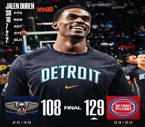 杜倫30+10+7 活塞勝鵜鶘