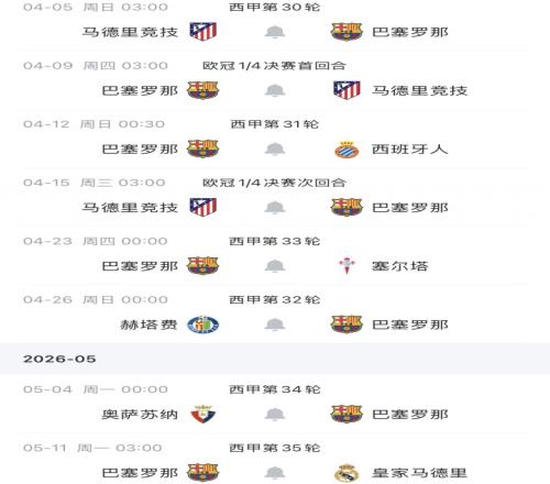 國際比賽日結(jié)束后,巴薩首場比賽是西甲客戰(zhàn)馬競,此后還有與馬競的歐冠1/4決賽對決。4月份巴薩共有6場比賽,歐冠若晉級還有半決賽對陣(4月28/29日及5月5/6日)。