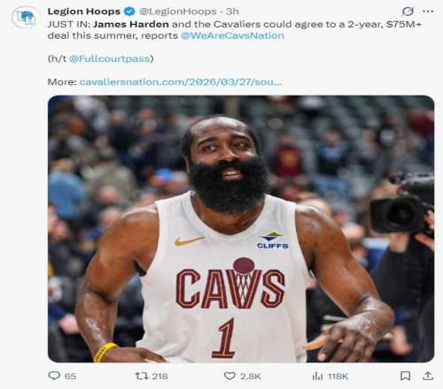 賽前報道哈登將拒絕執(zhí)行下賽季的球員選項,他將與騎士重簽一份兩年7500萬的合同,第二年是球員選項。