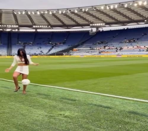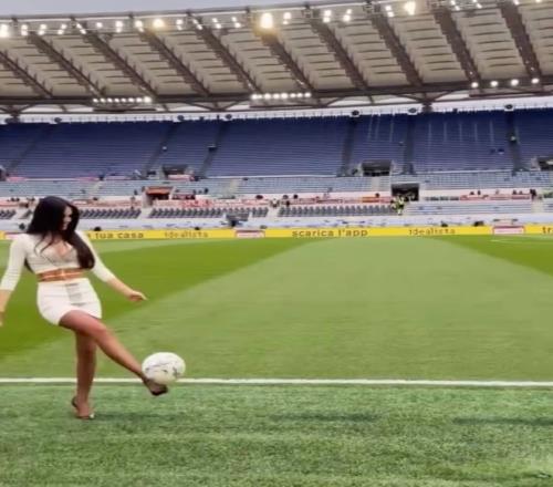 在國際比賽日到來之前,意甲賽場(chǎng)迎來了一位讓人目瞪口呆的女主播。她在羅馬對(duì)陣萊切的比賽開始前,露了一手足球技巧,證明了自己不僅僅是個(gè)“花瓶”。