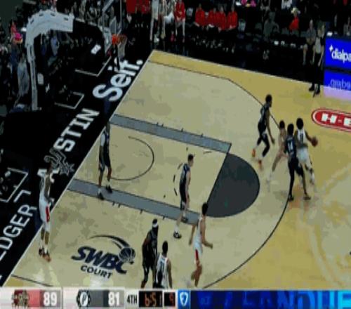 后面一次落入陣地戰(zhàn),楊瀚森連續(xù)秀內線腳步,多次標志性的轉身打進挑籃,再得2分。