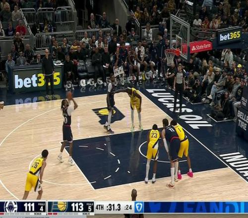 時間回到終場前50秒,兩隊比分108-113,快船落后于步行者。比賽看起來基本要結(jié)束了,這種時間節(jié)點落后5分,步行者的贏面還是很大的。