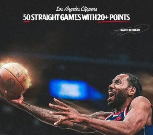 個人連續(xù)50場比賽得分20+。