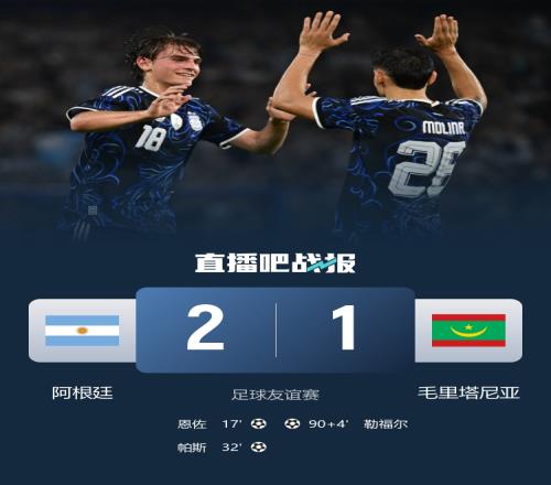 體育播報3月28日宣 北京時間3月28日07:15,國際足球友誼賽阿根廷迎戰(zhàn)毛里塔尼亞的比賽在阿爾貝托J阿曼多體育場進行,毛里塔尼亞FIFA排名僅115名,阿根廷FIFA排名第2。本場梅西替補席待命,上半場莫利納助攻恩佐推射首開記錄,帕斯任意球直接破門收獲國家隊首球,半場結(jié)束,阿根廷2-0毛里塔尼亞。下半場梅西替補登場,勒福爾補時抽射扳回一城,最終阿根廷2-1毛里塔尼亞。