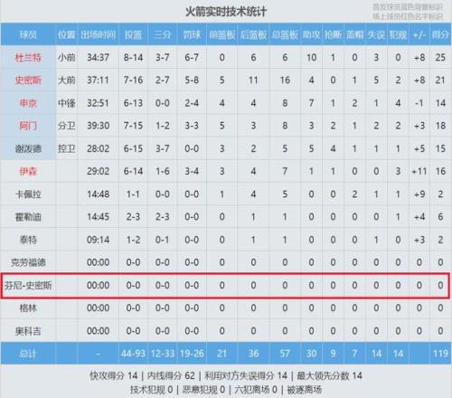 看看芬尼-史密斯的數(shù)據(jù),你就知道他為啥被DNP了。3月26日火箭108-110不敵森林狼,芬尼-史密斯替補(bǔ)出戰(zhàn)6分鐘,0投0中拿到0分1板0助0斷;3月24日火箭124-132不敵公牛,他替補(bǔ)出戰(zhàn)8分鐘,1投0中拿到0分2板0助0斷。