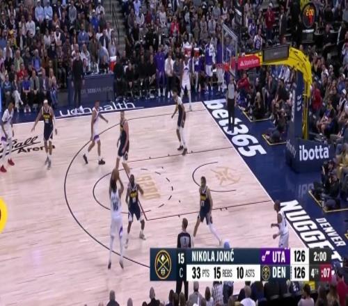 比賽進(jìn)行到關(guān)鍵時(shí)刻,掘金球星約基奇助攻卡梅隆·約翰遜命中底角三分球終于追平比分,同時(shí)自己的數(shù)據(jù)來到33分15籃板10助攻的三雙。