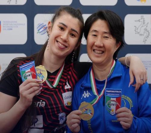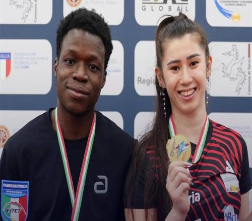 蒙法蒂尼在譚文玲的影響下接受了乒乓球訓(xùn)練,如今已經(jīng)成為意大利女乒新一代領(lǐng)軍人物。蒙法蒂尼在今年的意大利全錦賽上成為了三冠王,不僅和母親聯(lián)手奪得女雙冠軍,還和奧耶博德合作拿下混雙冠軍,此外還奪得了女單冠軍。