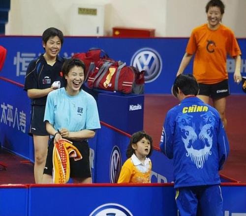 譚文玲的女兒蒙法蒂尼繼承了她的乒乓球天賦。值得一提的是,2005年世乒賽期間,譚文玲帶著4歲的女兒參加比賽。蒙法蒂尼又萌又可愛,吸引了中國女乒將士們的關(guān)注。陸元盛指導(dǎo)和萌娃聊天,旁邊的王楠笑得很開心。