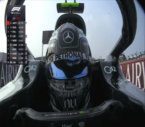 在最后一個飛馳圈,安東內(nèi)利沒能再提升自己的成績,勒克萊爾一度在第一段刷紫,但第二段成績不佳最終排名第四,安東內(nèi)利拿下桿位。