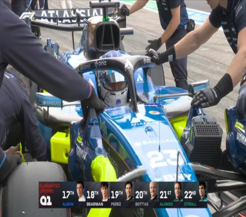 Q1停表,科拉平托在最后時刻上到第16,梅奔和法拉利位列前4,兩臺阿斯頓馬丁墊底,斯特羅爾、阿隆索、博塔斯、佩雷茲、貝爾曼和阿爾本被淘汰。