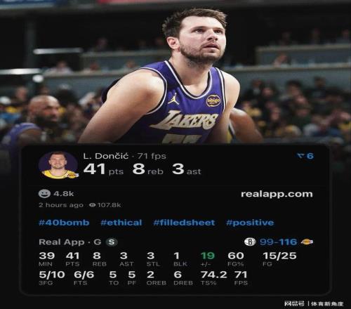 今天這場比賽,東契奇那可真是拼了,足足打了39分鐘呢!全場25次出手,命中了15球,三分球更是10投5中,最終拿到了41分8個籃板3次助攻,不過也有5次失誤、3次搶斷和1次蓋帽。哇又是40+的表現(xiàn)??!這已經(jīng)是東契奇最近第多少場40+的比賽了呀?在湖人14勝2負的這段時間里,東契奇可是有4場砍下40+,1場拿到50+,還有1場更是轟下了60+的驚人數(shù)據(jù)!