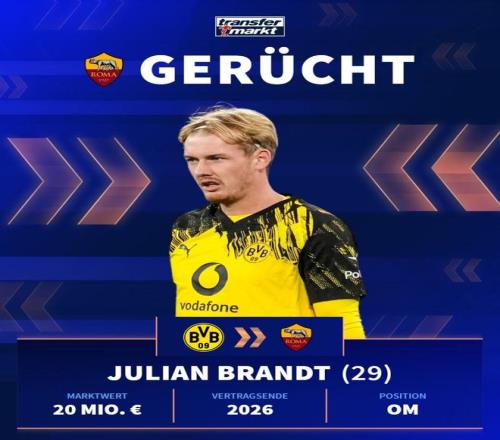 29布蘭特與多特蒙德的合同將在今夏到期,而球員本人已經(jīng)確認不會續(xù)約。這意味著,這位在德甲征戰(zhàn)多年的攻擊手,將以自由身進入轉(zhuǎn)會市場。在如今動輒上億轉(zhuǎn)會費的時代,一名擁有國家隊履歷、歐冠經(jīng)驗且仍處當(dāng)打之年的攻擊型中場可以零成本簽下,這樣的機會本就極為罕見。
