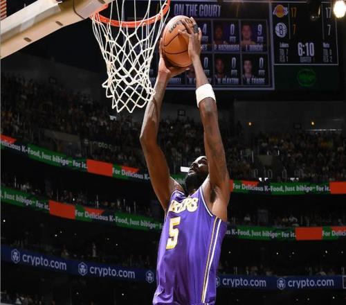 本場比賽中,湖人的先發(fā)中鋒德安德烈-艾頓(DeAndre Ayton)的出場時間并不多,但是其實整體表現(xiàn)還是不錯的。艾頓全場出場21分56秒,投籃3中3,罰球4中3,得到了9分7籃板1搶斷3蓋帽的數(shù)據(jù),還有2次失誤和2次犯規(guī),正負值為+5。艾頓在進攻端還是沒有辦法得到更多的出手機會,但是他的進攻效率相當不錯,還是在對手內(nèi)線制造了一些威脅的。除此之外,艾頓在籃板保護方面的表現(xiàn)也是值得肯定的,而且他在內(nèi)線防守和護筐方面的表現(xiàn)更是算得上可圈可點??雌饋砘@網(wǎng)先發(fā)中鋒尼古拉斯-克拉克斯頓(Nicolas Claxton)在艾頓面前得到了一些分數(shù),但是實際上這也和湖人在防守策略方面的選擇相關(guān)。艾頓不得不被換防,而其他球員又沒有足夠出色的內(nèi)線防守能力,這才是克拉克斯頓得到不少分數(shù)的關(guān)鍵因素。