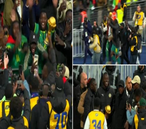 據(jù)RMC在現(xiàn)場(chǎng)的報(bào)道,塞內(nèi)加爾中場(chǎng)帕佩·蓋耶和球迷們進(jìn)行了瘋狂慶祝。他手持非洲杯獎(jiǎng)杯,和看臺(tái)上的球迷足足互動(dòng)了十分鐘。