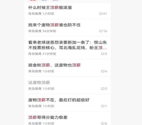 王奕博兩頭不討好,新老東家球迷都噴他。青島球迷說,“什么時候王頂薪能滾蛋”、“找來個廢物頂薪誰也防不住”。老東家球迷說,不知道為啥對我們怨氣那么大!休賽季方俊也開了400萬合同留你!你自己要走!然后一直感覺跟我們有仇似的,回我們主場打球,比賽下場的時候,手放耳旁做挑釁,賽后老隊(duì)友找你圍一起敘舊不情不愿!現(xiàn)在去青島拿頂薪,天天被青島球迷噴,不知道有啥想法。
