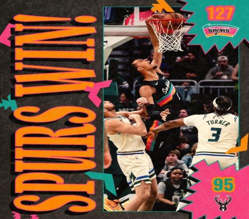 今天馬刺以127比95大勝雄鹿,徹底斷了后者的季后賽希望,文班亞馬獨得23分15籃板6助攻2搶斷1封蓋。