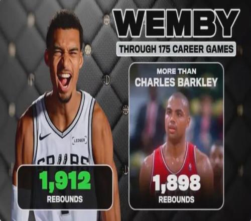 在籃板方面,文班亞馬以1912個超越了巴克利的1898個。
