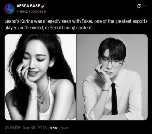體育播報3月29日宣近日,外網(wǎng)有賬號爆料,電競傳奇選手Faker與韓國女團aespa隊長Karina(柳智敏)在首爾甜蜜約會,一度成為熱門話題。