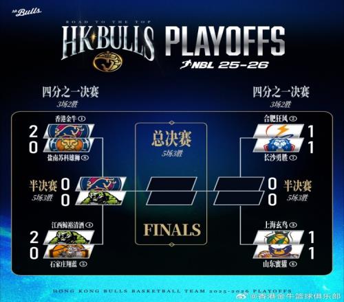 季后賽對陣表更新!接下來球隊(duì)將在半決賽中對陣江西鯨裕清酒!