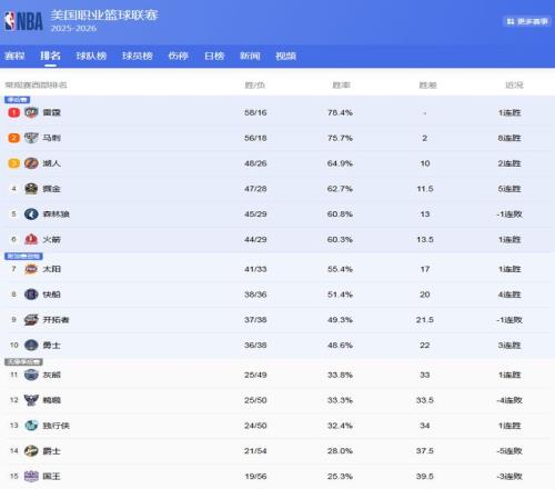 雷霆目前58勝16負(fù)排名第1,但球隊(duì)領(lǐng)先馬刺只有2場,西部第1還有懸念,湖人打的出色,48勝26負(fù)位列第3,而掘金、森林狼、火箭,圍繞第4展開爭奪!