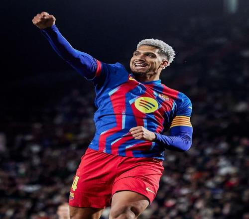 而在巴薩,阿勞霍則是后防線上最穩(wěn)定的一環(huán)。無論球隊戰(zhàn)術(shù)如何變化,他始終是弗里克最信任的中衛(wèi)之一。強悍的對抗、出色的速度以及冷靜的判斷,讓他成為諾坎普最可靠的定海神針,也因此被賦予隊長袖標。