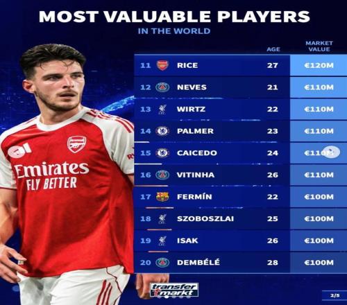德轉(zhuǎn)世界足壇身價(jià)前50:英超23人入圍巴黎8人上榜,意甲僅2人