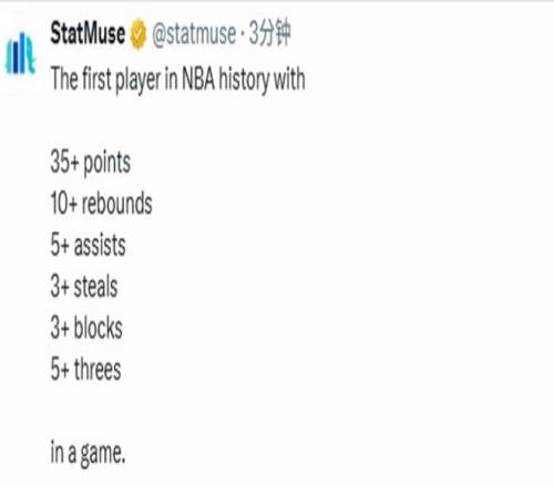 北京時(shí)間3月30日,火箭客場(chǎng)134-102大勝鵜鶘,本賽季第三次擊敗對(duì)手?;鸺倪@場(chǎng)勝利,也意味著開拓者和勇士已經(jīng)鎖定附加賽,無緣直接晉級(jí)季后賽?;鸺雸?chǎng)領(lǐng)先21分,下半場(chǎng)鞏固優(yōu)勢(shì),最終拿下勝利。申京攻守俱佳,得到36分14籃板7助攻3搶斷3蓋帽,投籃23中12,三分7中5,罰球8中7。數(shù)據(jù)顯示,申京成為NBA歷史上首位單場(chǎng)至少35分10籃板5助攻3搶斷3蓋帽5三分的球員。