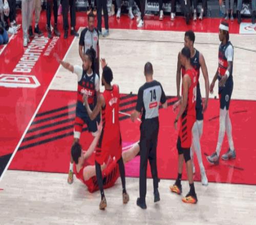 小楊與奇才的里斯搶籃板卡位,里斯直接從背后把楊瀚森架起來(lái),拖走,最后“咣”一下抱摔在地上,小楊全程沒反抗,只能攤手求助。