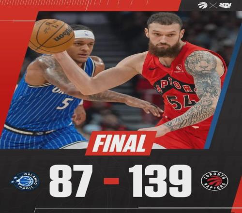 北京時間3月30日,NBA常規(guī)賽,東部第八的魔術(shù)客場87-139慘敗東部第五的猛龍。單場狂輸52分,刷新了魔術(shù)隊(duì)史最大失利分差,此前紀(jì)錄是51分。同時這也是猛龍隊(duì)史第二大贏球分差,僅次于2021年4月2日大勝勇士的53分。