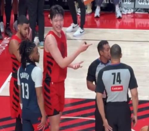 而在一次對手罰球的時(shí)候,楊瀚森要拼搶籃板,此時(shí)奇才隊(duì)的球員里斯抱摔了楊瀚森,將他摔在地上。楊瀚森當(dāng)時(shí)沒有什么反應(yīng),被隊(duì)友拉起來之后還沖著裁判笑嘻嘻,仿佛是在嘲諷對手的氣急敗壞。此時(shí),裁判各打五十大板,吹了楊瀚森和里斯各一個技術(shù)犯規(guī)。
