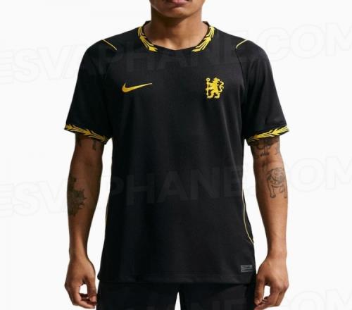 切爾西2026-27賽季客場球衣由耐克設(shè)計生產(chǎn),球衣采用了簡約而現(xiàn)代的美學(xué)風(fēng)格,以純黑色為底色,衣身部分沒有任何背景圖案、紋理或貫穿性的圖形,領(lǐng)口和袖口成為設(shè)計亮點(diǎn)。