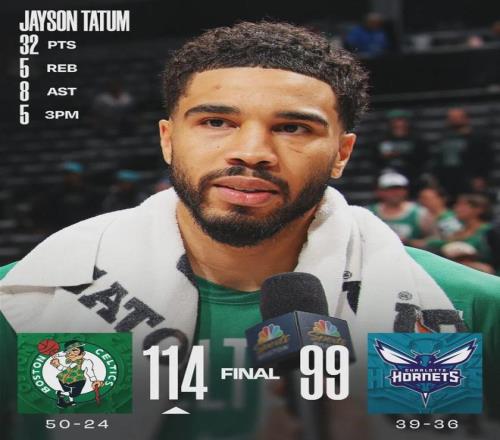 杰倫-布朗因傷休戰(zhàn),塔圖姆打出個(gè)人賽季最強(qiáng)一戰(zhàn):投籃23中12,三分10中5,罰球5中3,狂砍32分5籃板8助攻,正負(fù)值+15。塔圖姆復(fù)出之后打了11場比賽,場均20.9分9.1籃板4.2助攻,投籃命中率39.9%,三分命中率32.3%。