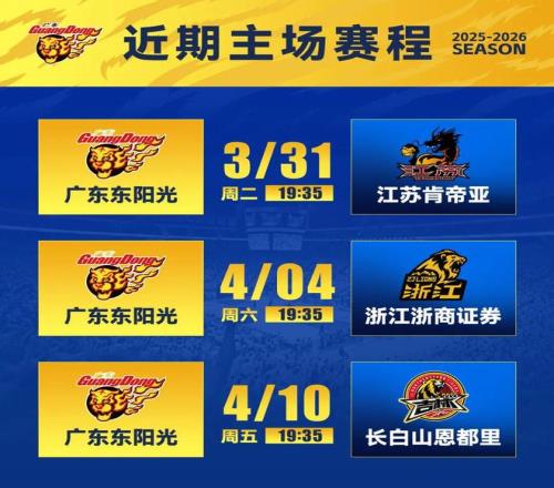 3月31日,CBA常規(guī)賽第33輪,廣東東陽(yáng)光將在主場(chǎng)與江蘇肯帝亞男籃進(jìn)行二番戰(zhàn)。此前第28輪,華南虎客場(chǎng)1分惜敗對(duì)手。