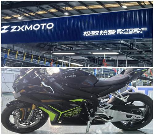 張雪機(jī)車的工廠,占地面積不大,廠房可以一眼望穿,廠里放著黑白兩色賣得最好的車型500RR(500RR是張雪機(jī)車的主力車型)。當(dāng)然,這里還有本次葡萄牙站奪冠的量產(chǎn)車原型820RR(參賽車輛型號為820RR-RS),機(jī)車上面的“ZXMOTO”噴涂格外耀眼醒目。