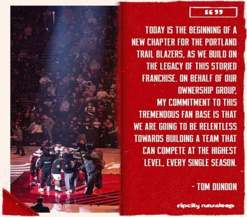 開拓者官方宣布,經(jīng)NBA董事會(huì)批準(zhǔn),湯姆·鄧頓所領(lǐng)導(dǎo)的財(cái)團(tuán)已完成對(duì)球隊(duì)多數(shù)股權(quán)的收購(gòu)。