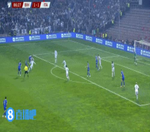 第79分鐘,波黑右路傳中,后點(diǎn)哲科頭球攻門(mén)被多納魯馬撲出!門(mén)前塔巴科維奇補(bǔ)射破門(mén)!波黑1-1扳平十人意大利↓
