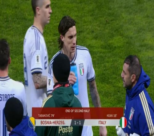 體育播報(bào)4月1日宣 北京時(shí)間2:45,世預(yù)賽歐洲區(qū)附加賽決賽波黑vs意大利,比賽在比利諾波耶球場(chǎng)打響!上半場(chǎng),波黑門(mén)將送大禮,巴雷拉助攻基恩破門(mén)!多納魯馬多次撲救;巴斯托尼最后一人犯規(guī)染紅!下半場(chǎng),基恩錯(cuò)失單刀良機(jī)!塔巴科維奇補(bǔ)射扳平!90分鐘結(jié)束,十人意大利1-1波黑,雙方進(jìn)入加時(shí)!