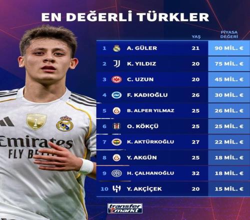 土耳其球員身價(jià)榜TOP10: