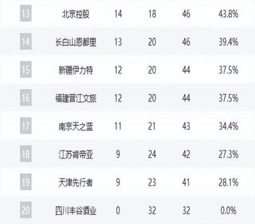 季后賽邊緣球隊(duì)競(jìng)爭(zhēng)尤為激烈:北控隊(duì)(14勝18負(fù))排名第13,吉林隊(duì)(13勝20負(fù))第14,新疆、福建同以12勝20負(fù)并列第15、16位,仍有理論上的沖擊可能。而江蘇隊(duì)(11勝22負(fù))、同曦隊(duì)(10勝23負(fù))、天津隊(duì)(8勝25負(fù))與四川隊(duì)(7勝26負(fù))已基本無(wú)緣季后賽,進(jìn)入重建節(jié)奏。