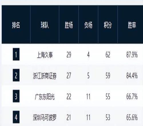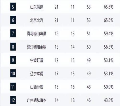 上海14連勝繼續(xù)領(lǐng)跑,廣廈第2,廣東重回第3,山東第5,遼寧第10