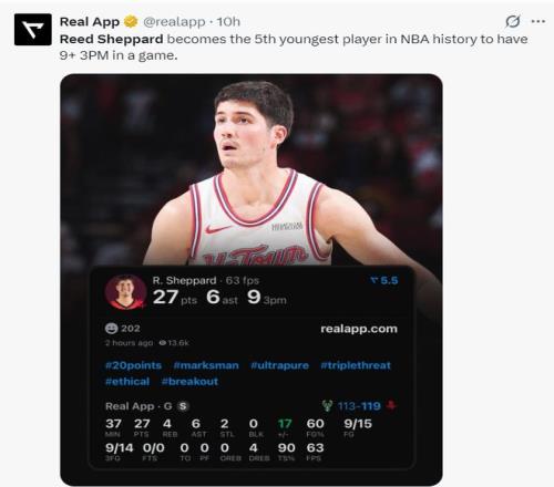 3.謝潑德是NBA歷史第五年輕單場(chǎng)能命中9個(gè)三分球的球員;