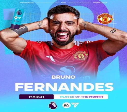 B費(fèi)當(dāng)選英超3月最佳球員!曼聯(lián)隊(duì)長(zhǎng)目前已拿到6次英超月最佳,僅次于阿奎羅,凱恩和薩拉赫(都是7次)。