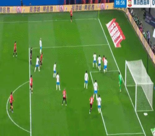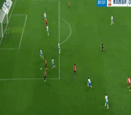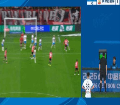 傷愈復(fù)出的費(fèi)利佩留在替補(bǔ)席,王子銘首發(fā)出場。比賽的第7分鐘,青島西海岸后衛(wèi)解圍失誤,無人盯防的韋林頓掃射破門,1比0!