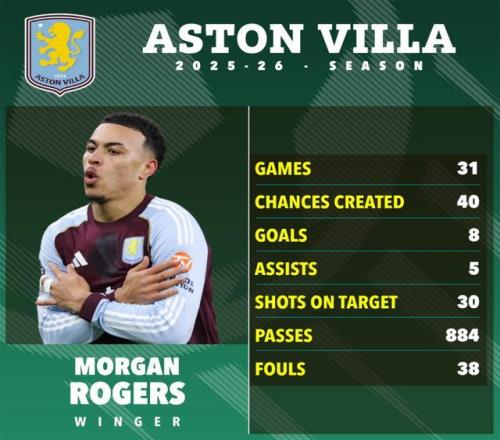 豪門搶瘋了!23歲羅杰斯今夏或離維拉,轉會費恐破億