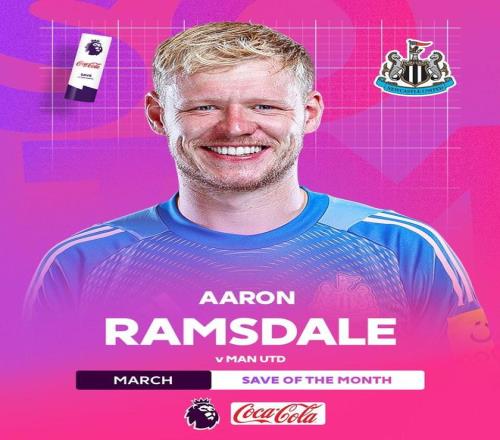 北京時(shí)間4月3日,英超官方宣布紐卡斯?fàn)柭?lián)門將拉姆斯代爾在第29輪對(duì)陣曼聯(lián)時(shí)的撲救當(dāng)選3月最佳撲救。